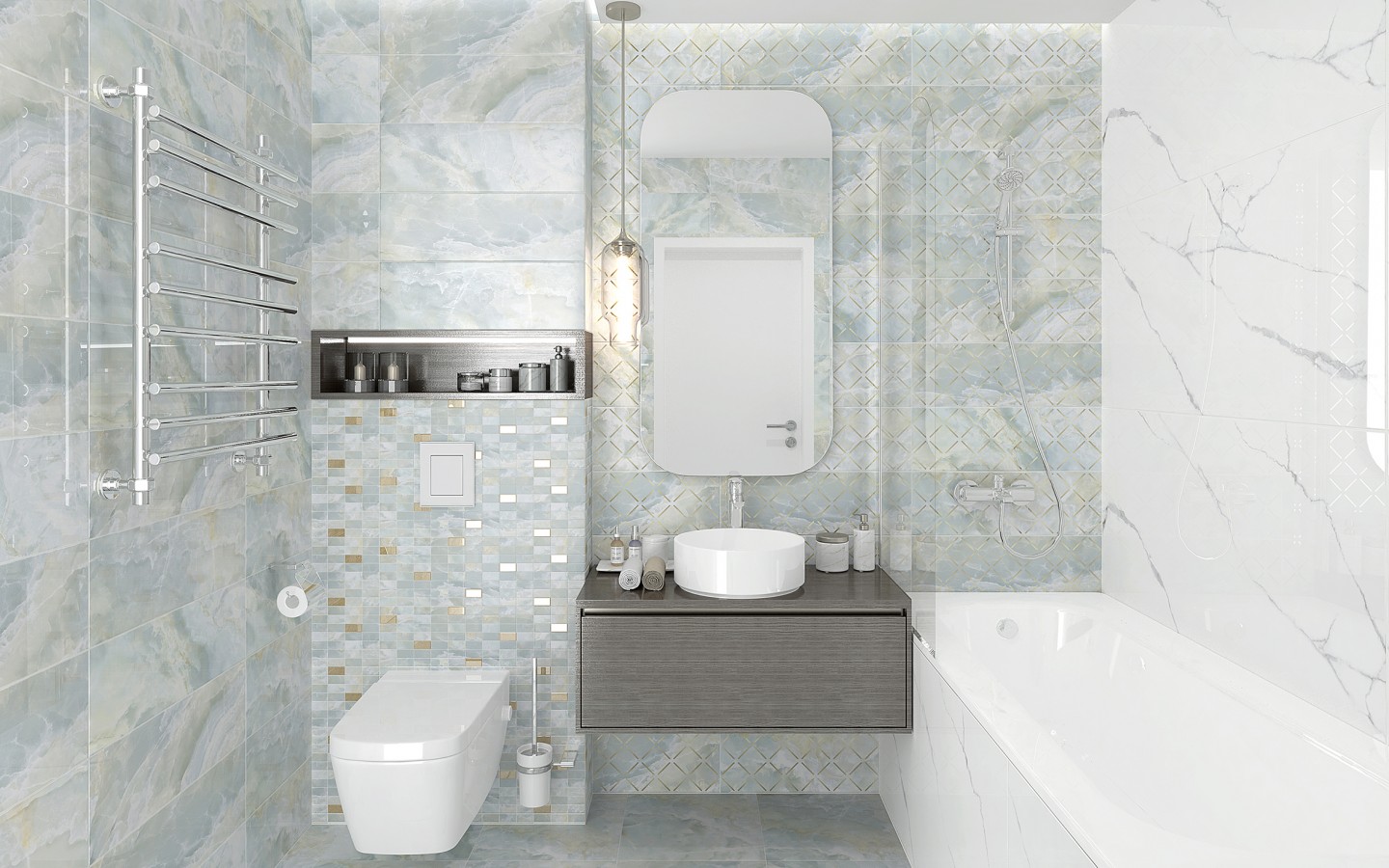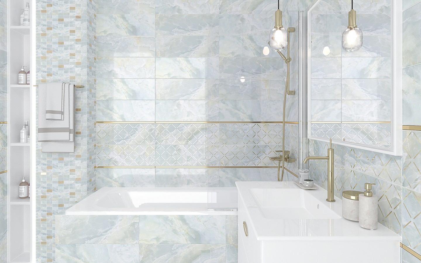 Плитка настенная 60x20 Laparet Эдем Декор мозаичный светло-голубой золото MM60156