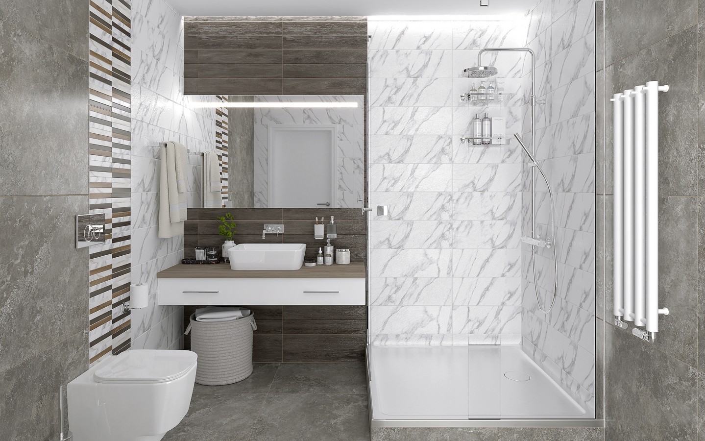 Плитка настенная 60x2.9 Laparet Бордюр метал. серебро глянцевое