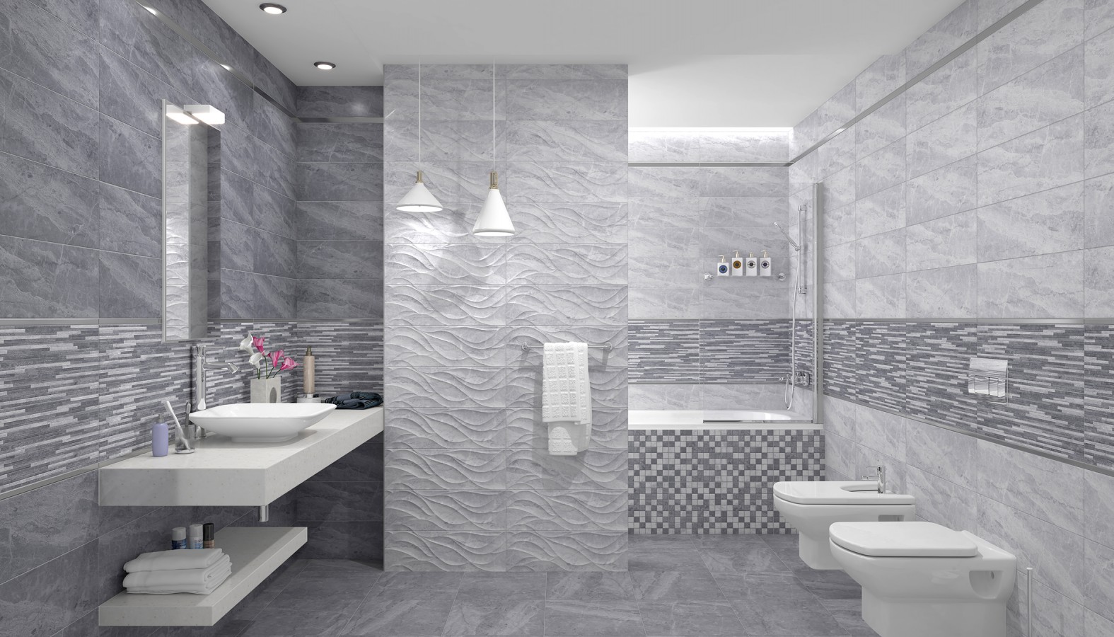 Плитка настенная 60x20 Laparet Пегас серый рельеф 17-10-06-1179
