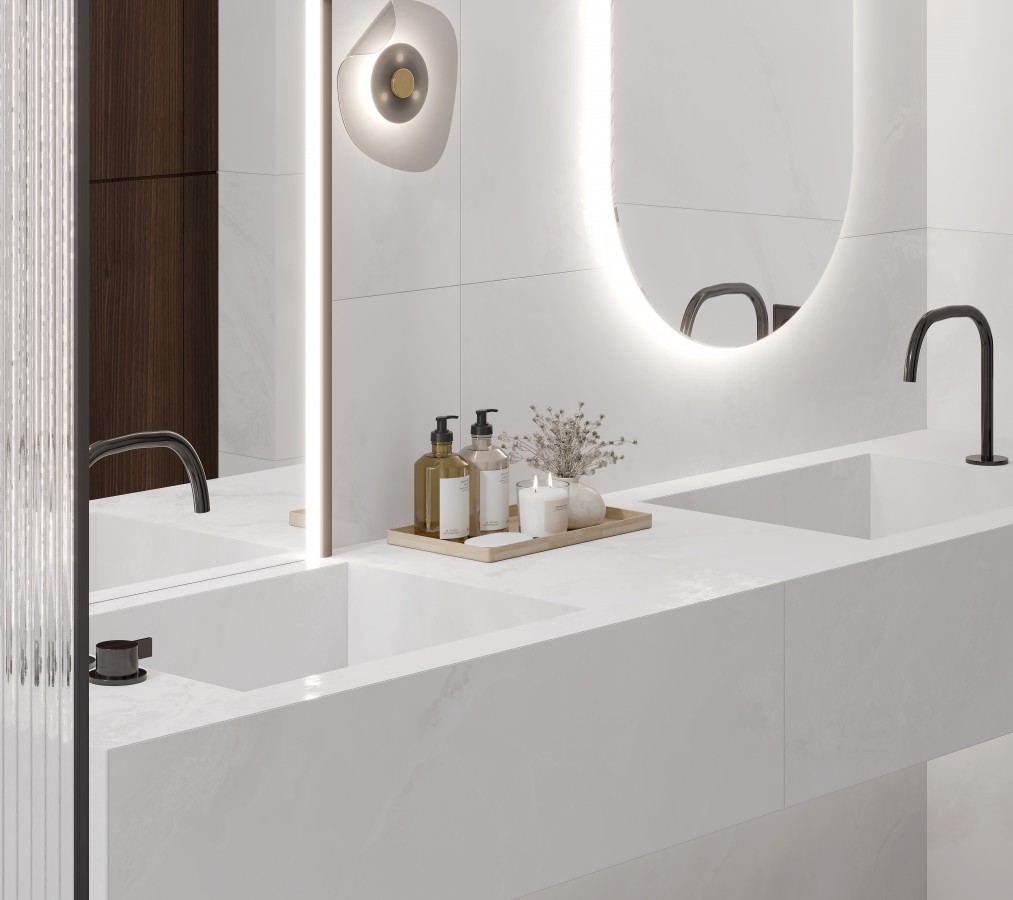 Керамогранит 119.1x59.5 Laparet Бернини Бианко белый LP6012G0541R матовый+гл.чернила