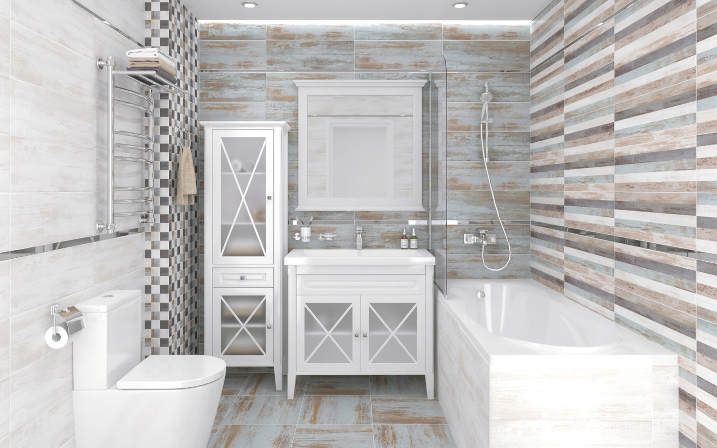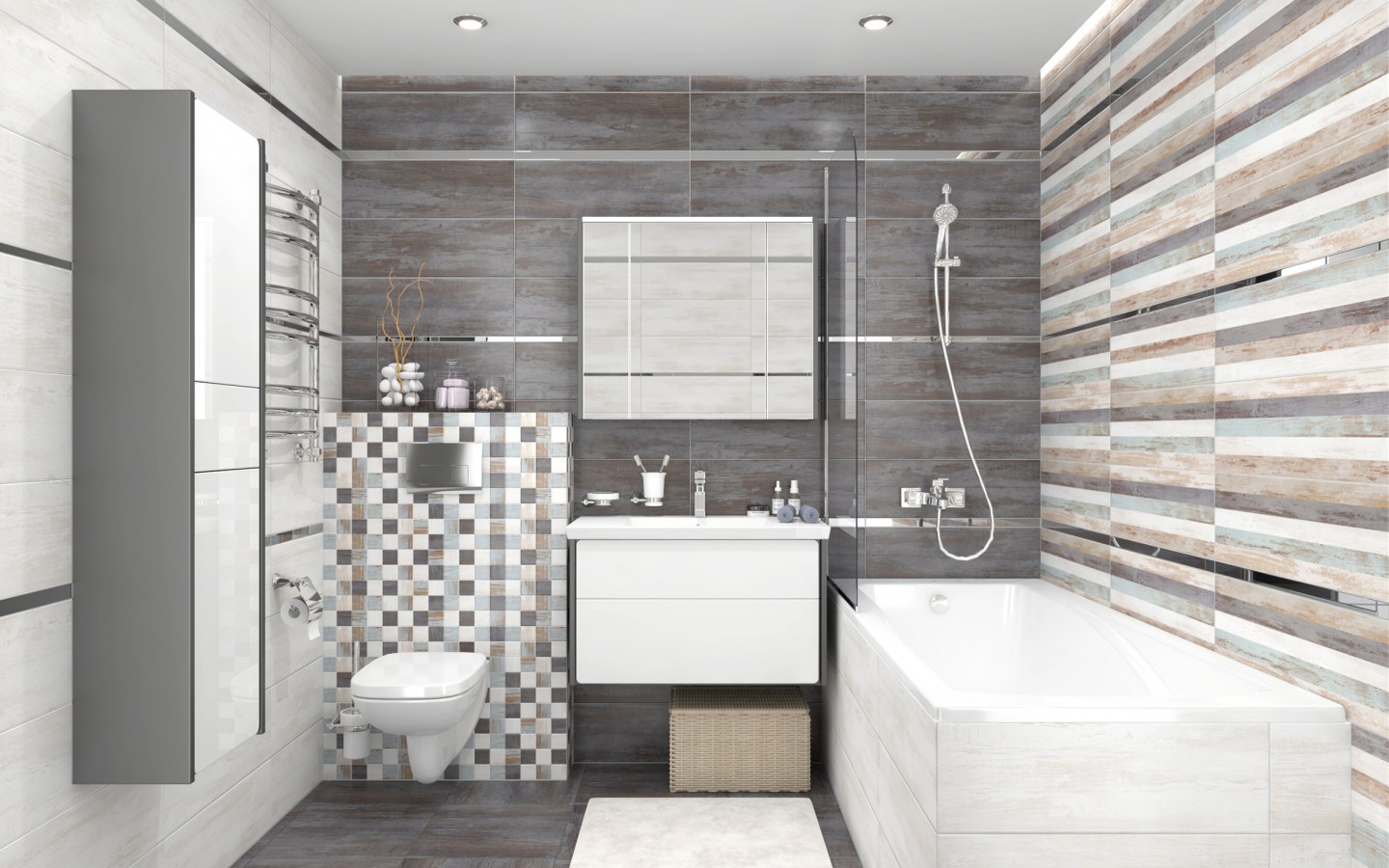 Плитка настенная 60x20 Laparet Гавана Декор мозаичный микс MM60071 матовый