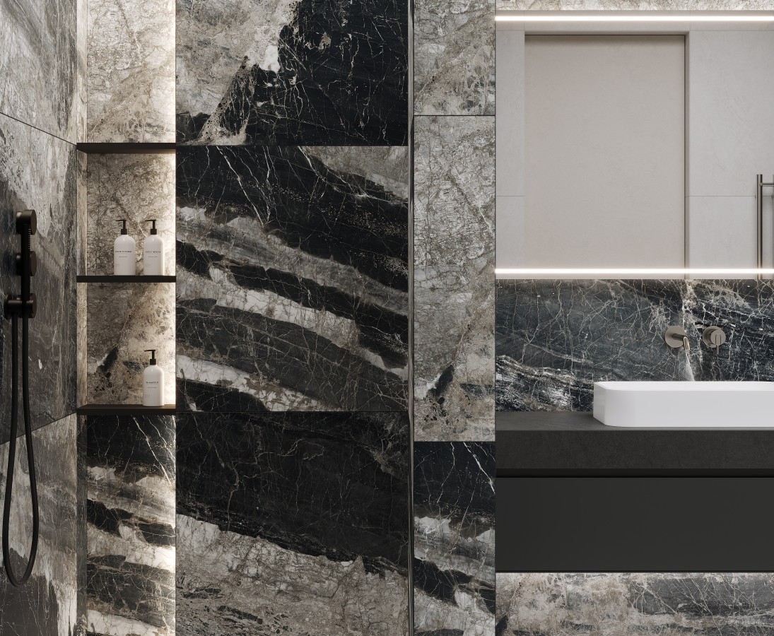 Керамогранит 160x80 Laparet Лунар Неро графитовый матовый+гл.чернила