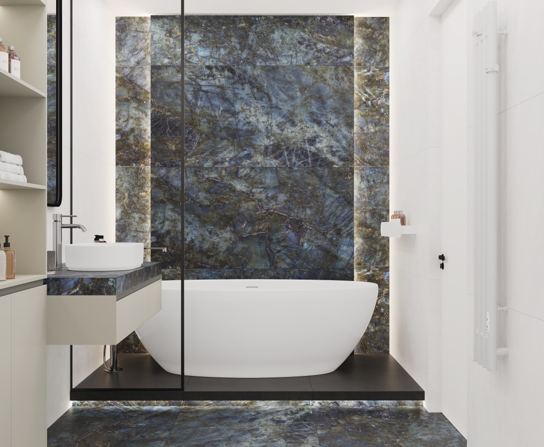 Керамогранит 160x80 Laparet Ригел Азул синий матовый+гл.чернила