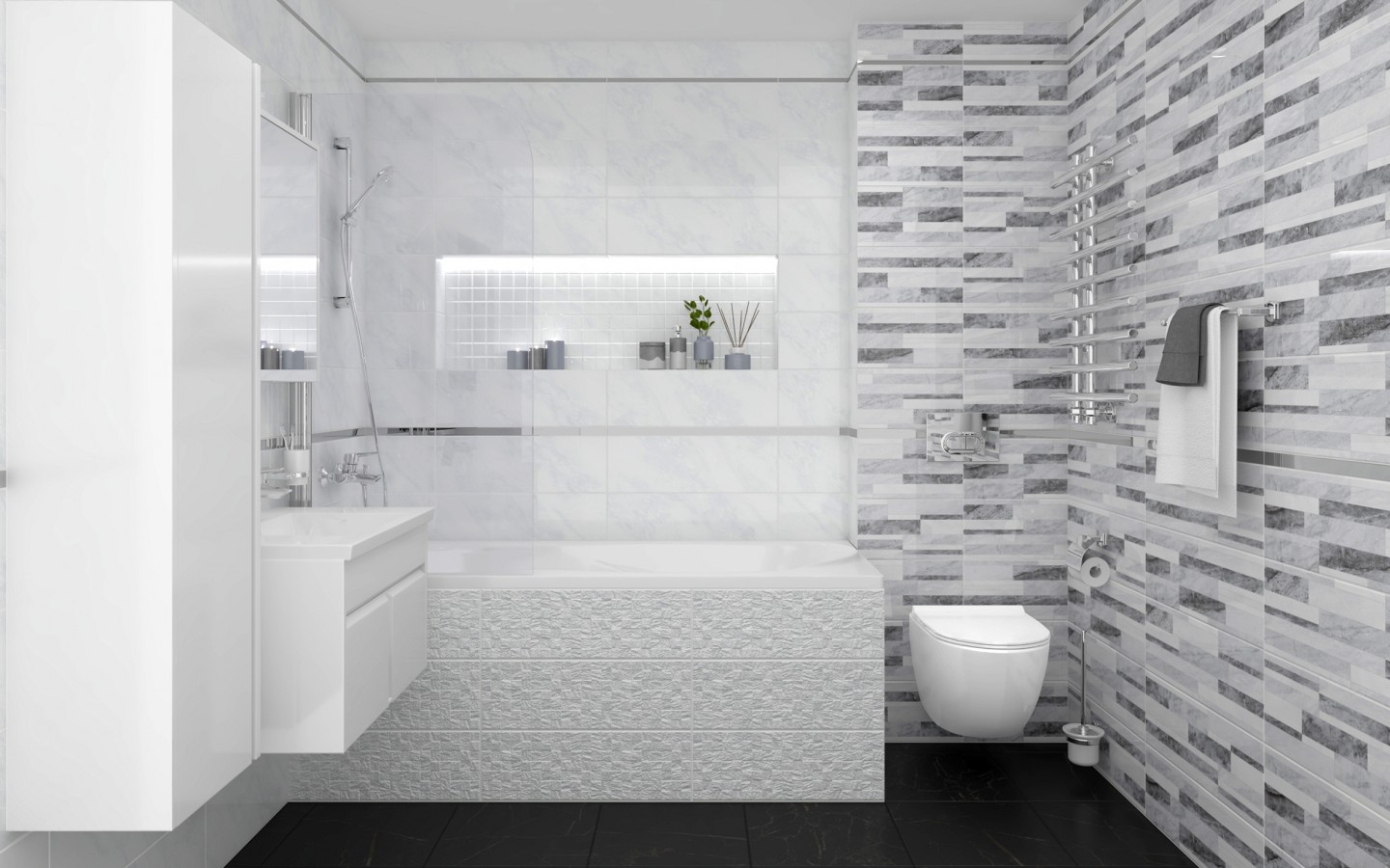 Плитка настенная 60x20 Laparet Роял микс серая 60086 глянцевая