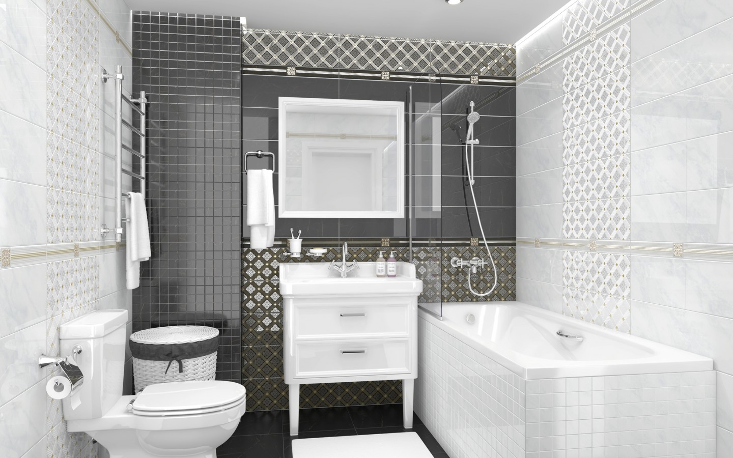 Плитка настенная 60x20 Laparet Роял Декор чёрный AD B483 60045 глянцевый