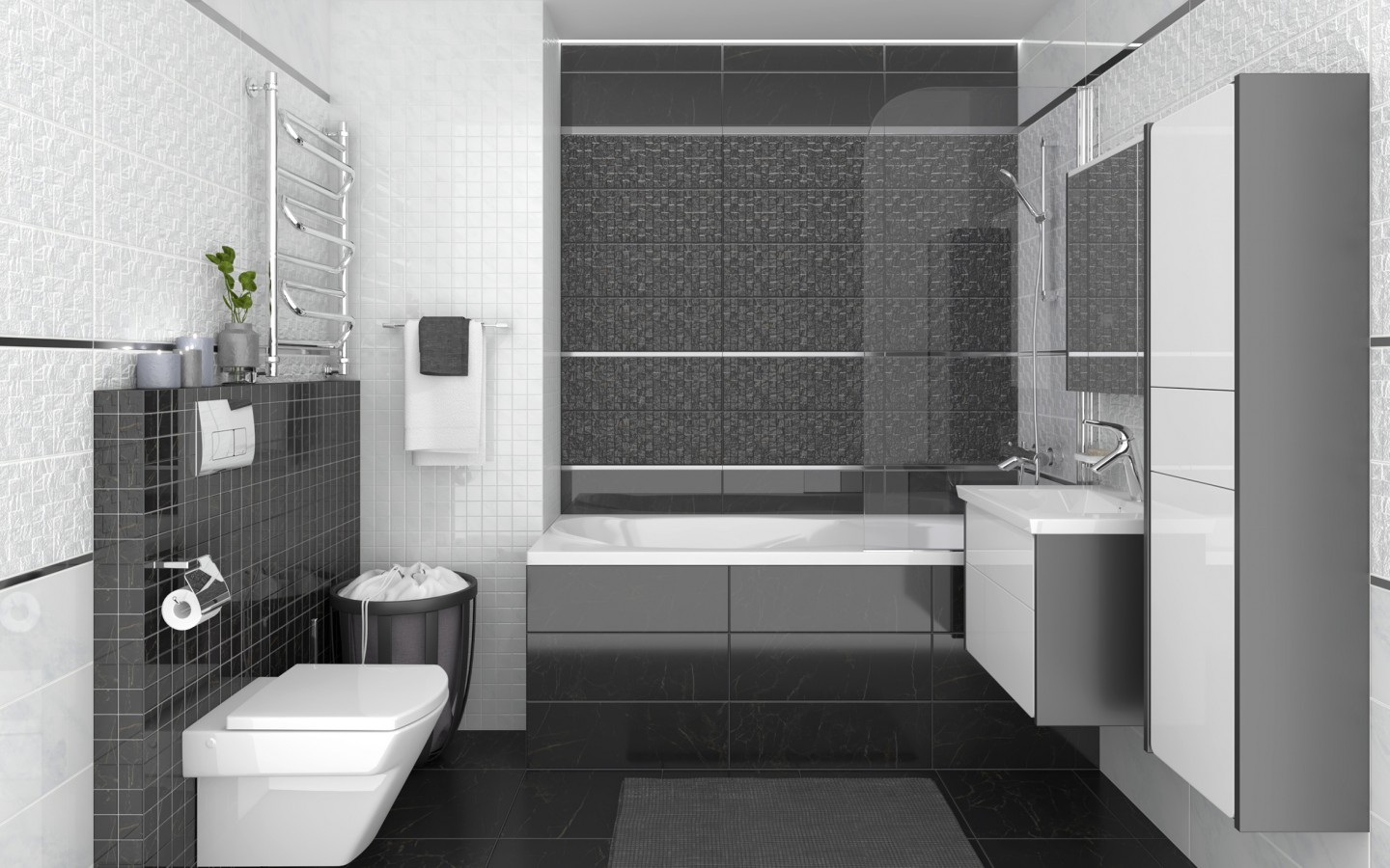 Плитка настенная 60x20 Laparet Роял чёрная 60045 глянцевая